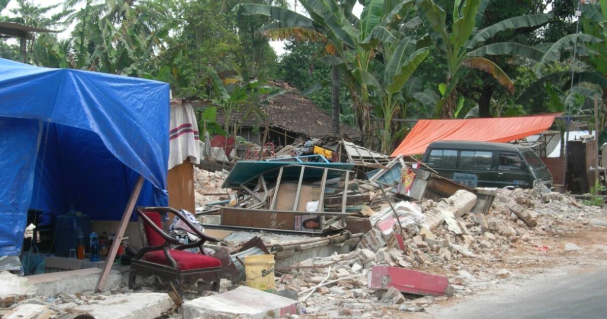 Zerstörung auf der indonesischen Insel Java nach einem Tsunami in 2006