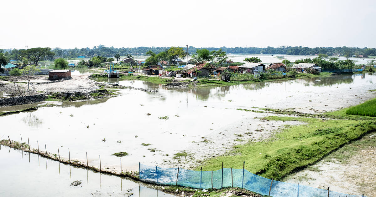 In Bangladesch betreuen wir von Aktion gegen den Hunger ein Programm, das Landwirt*innen dabei unterstützt, in überschwemmten Gebieten ihre Landwirtschaft neu aufzustellen. Mit unseren Schulungen helfen wir Bäuer*innen beim Wiederaufbau zerstörter Anbauflächen und vermitteln innovative agrarökologische Methoden. Wir legen Teiche zum Auffangen von Wasser an und bauen Deiche zum Schutz vor Überschwemmungen. Das Obst und Gemüse wird an den Teichufern, auf den Deichen und auf Gittern auf der Wasseroberfläche angebaut. Durch unser Projekt sind die Erträge der Landwirt*innen in der Region deutlich angestiegen [5].