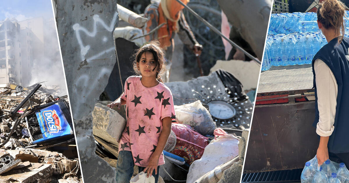 In Gaza arbeiten wir mit Lieferant*innen zusammen, die noch über Lagerbestände verfügen, um dringend benötigte Hilfsgüter wie Wasser, Lebensmittel, Hygieneartikel, Windeln, Decken und Matratzen zu verteilen. Wir bieten auch einen Reinigungsservice in den Notunterkünften an und haben Familien mit Bargeld versorgt, damit sie sich das Nötigste kaufen können.