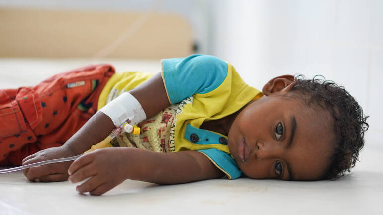 Der Eineinhalbjährige war akut mangelernährt und durch wochenlangen Durchfall extrem geschwächt. Der Grund des Durchfalls: Die einzige Wasserquelle des Dorfes ist mit Bakterien kontaminiert. Ein lebensbedrohliches Problem für viele Familien im Jemen. Aber Rafi hatte Glück: Mit lebensrettenden Medikamenten und Aufbaunahrung konnten wir dem Jungen helfen und seine Mutter darin schulen, wie sie ihn vor Bakterien schützen kann.