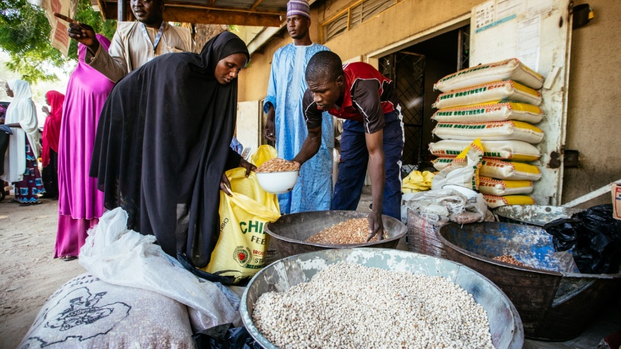 Es ist neun Uhr morgens in Maiduguri, einer Stadt im Nordosten Nigerias. Gelbe dreirädrige Motorräder wirbeln Staub auf. Am Straßenrand warten bereits die ersten Marktstände auf Kundschaft.