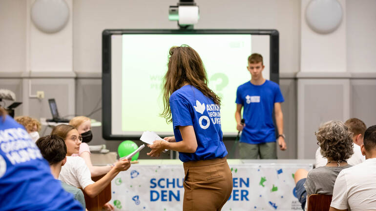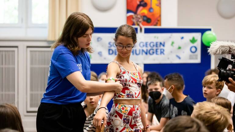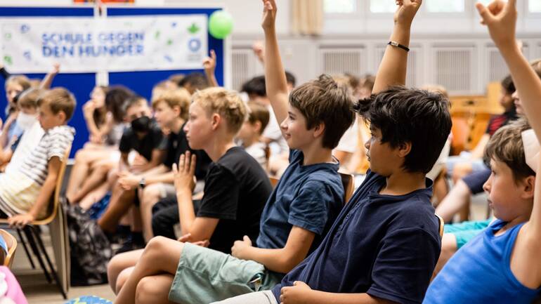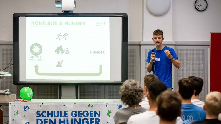 Ein*e Mitarbeiter*in von Aktion gegen den Hunger kommt an Ihre Schule oder in Ihren Online-Unterricht und gestaltet mit den Schüler*innen eine interaktive Lerneinheit. Durch Kurzfilme, kleine Experimente und begleitende Materialien lernen die Schüler*innen die Ursachen und Folgen globaler Mangelernährung kennen und erhalten einen Einblick in das Leben gleichaltriger Kinder aus anderen Ländern.
